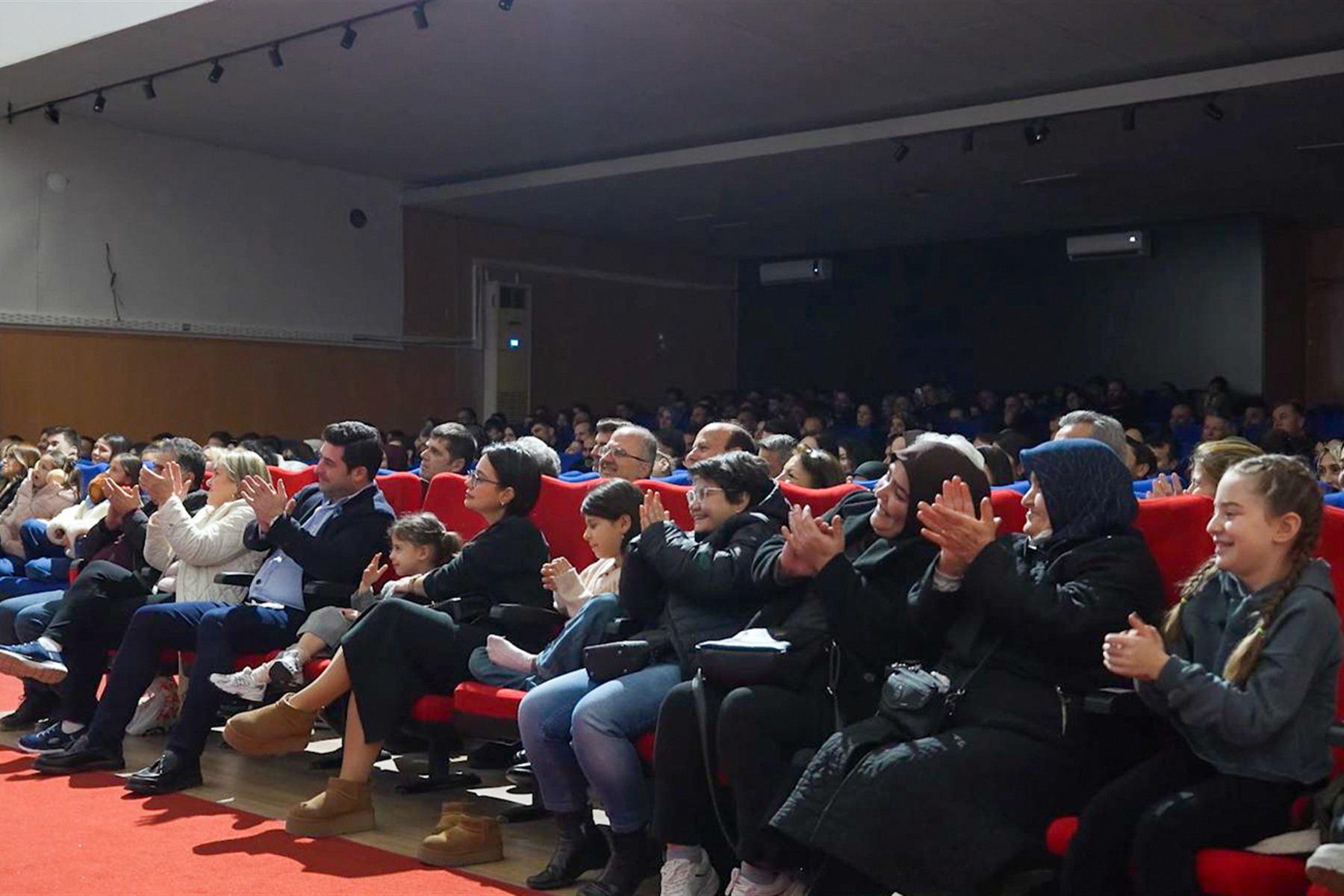Salonun tamamen dolduğu gecede seyirciler, oyun boyunca kahkaha ve alkışlarıyla oyunculara eşlik etti. Yüksek temposunu bir an olsun düşürmeyen oyun, Bafralı tiyatroseverlerden tam not aldı. Oyun sonunda konuşan Yönetim Kurulu Başkanımız Muharrem Uyar, kültürel faaliyetlere büyük önem verdiklerini belirterek,