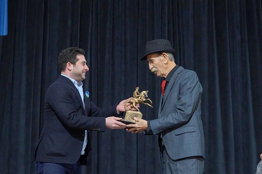 Programın sonunda GİAD Başkanı Muharrem Uyar, usta oyuncu Sinan Bengier’e katkılarından dolayı plaket takdim etti.
